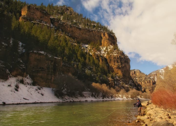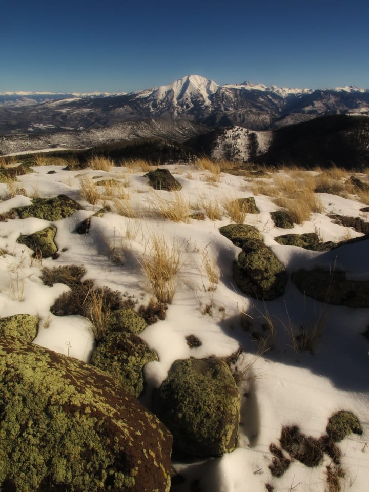 The snow slows to a calm flurry, then to nothing at all. Above us the sun peeks through the thinning cloud cover. We’re on a long stretch of flat highway now and I believe we’re about to enter Glenwood Canyon.
